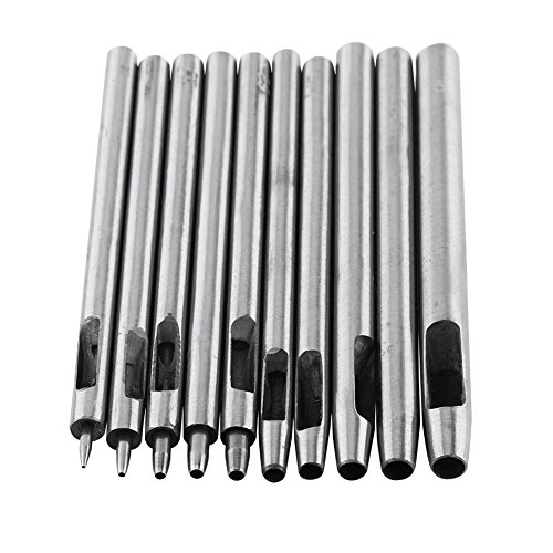 10Pcs Leather Hole Punch Set, Metal Leather Puncher Kit Hollow Craft Tool for Leather Belt Watch Band Gasket, 0.5-5mm