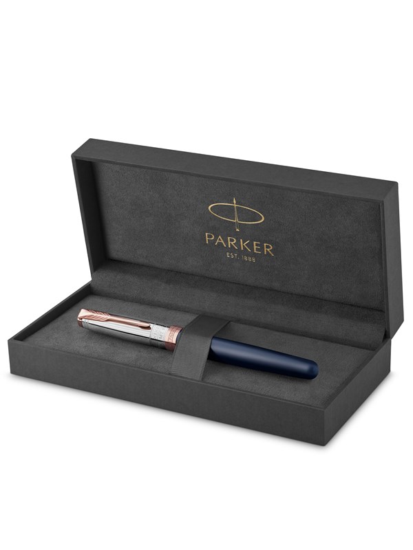 Parker Sonnet Rollerball Pen | Intrerpid Journeys Collection, Mt. Fuji Edition | Blå lack & massivt silver med rosa guldkanter | Finpunkt med svart bläck | Presentlåda