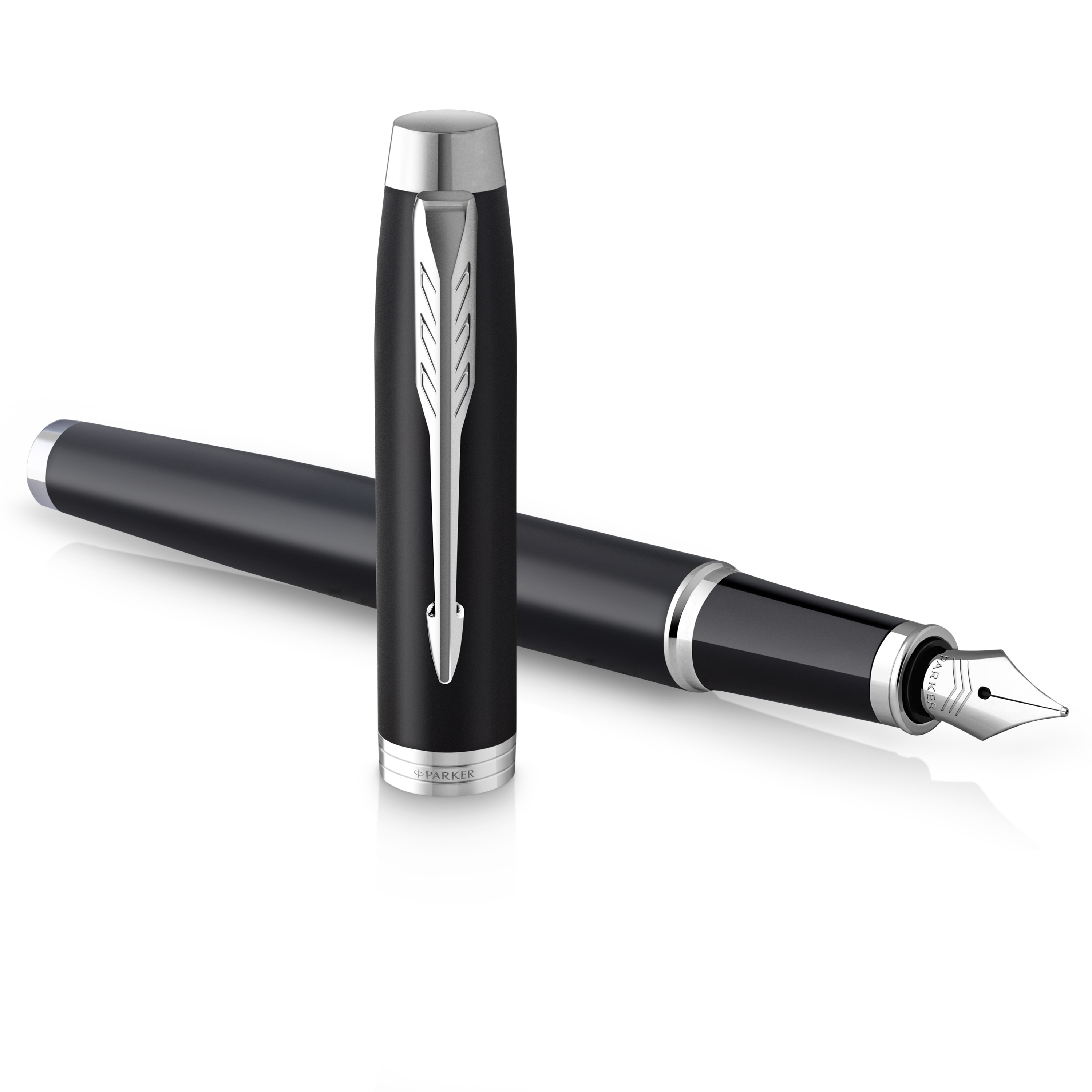 Parker - PARKER IM Fountain Pen - Matte Black with Chrome Trim - Fine Point with Blue Ink Cartridge