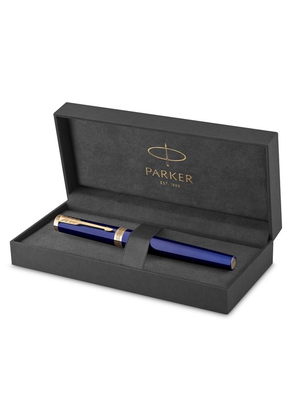Parker Ingenuity Rollerball Pen | Core Collection | Blå med guldkant | Finpunkt med svart bläck | Presentlåda