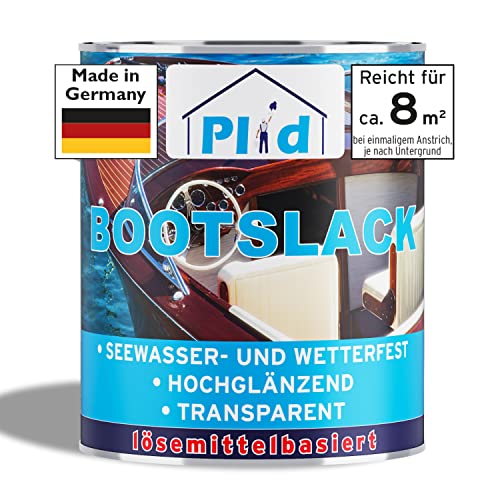 PLID® Båtfärg glänsande för trä – klarlack trä vattentät – köksbänkskiva lackering – lack för parkett, trappor, trädgårdsmöbler och diskar – trälack yachtlack – Made in Germany 0,75 l