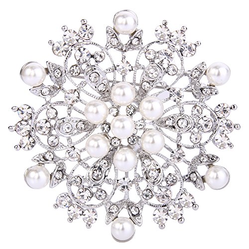 EVER FAITH Kvinnors kristallkräm simulerad pärla vinter snöflinga blomma brosch klar silverton