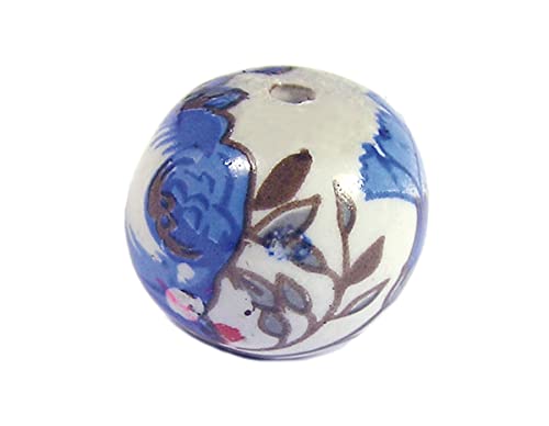 INNSPIRO Keramiska pärlor, vit kula, dekorerad med blå blomma, diameter 20 mm. 50 u., Keramik, Pärla