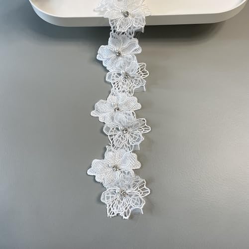 2 meter blomma pärla spetskant trimband 8 cm bred trimning tyg broderad applikation sömnad hantverk bröllop brudklänning utsmyckning fest dekoration - vit
