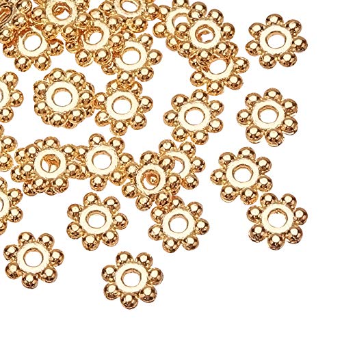 PandaHall Elite - 2 000 st mellanlägg pärlor guld blomma pärla legering distanspärlor för smyckestillverkning halsband armband, 4 x 1,2 mm