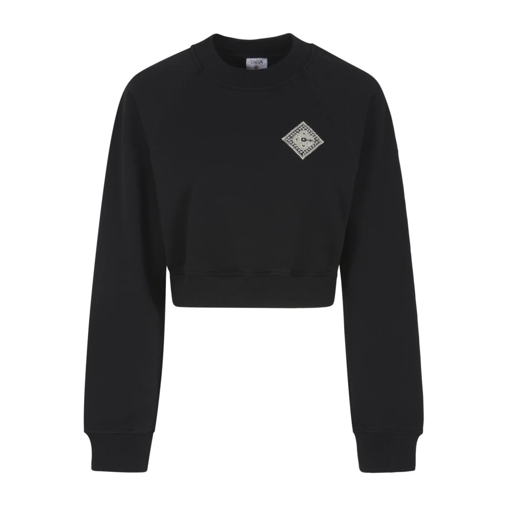 Casablanca, Sweatshirts & Hoodies , Dam, L, Bomull, Pärla Diamant Patchad Cropped Sweatshirt