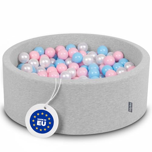 KiddyMoon bollbad 90 x 30 cm/200 bollar Ø 7 cm bollpool med färgglada bollar för spädbarn barn rund, ljusgrå) baby blå/rosa/pärla