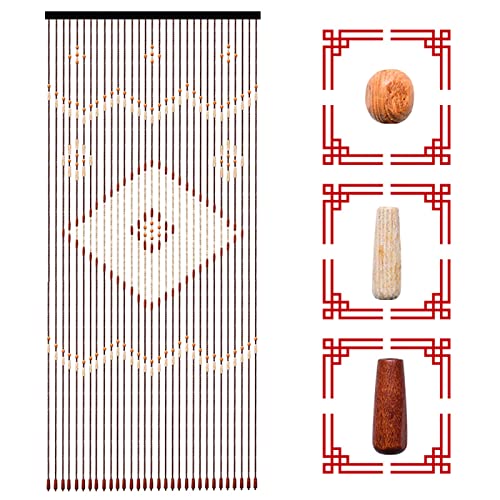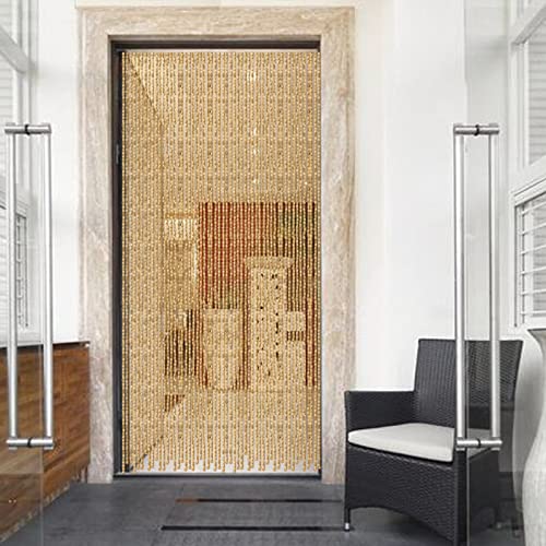 Fermoirper Dörrgardin, bambugardin, träpärlgardin, för kinesisk pärlgardin för dörrar, insektsskydd, balkongdörr, dörrgardin, flyggardin, terrass, 90 x 175 cm