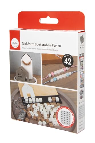 Rayher Silikongjutform bokstäver/nummerpärlor, 42 pärlor, 10 x 10 mm, för hällning med kreativ betong, konstharts gjutharts, raysingjutpulver, 36195000, grå