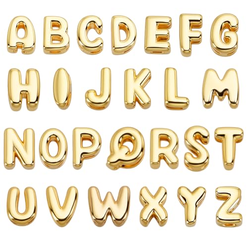 AHANDMAKER 26 stycken 18K äkta guldpläterade bokstäver berlocker mässing AZ alfabet pärlor personliga hängen dinglande berlocker ornament för gör-det-själv handgjorda halsband smycken göra, Mässing