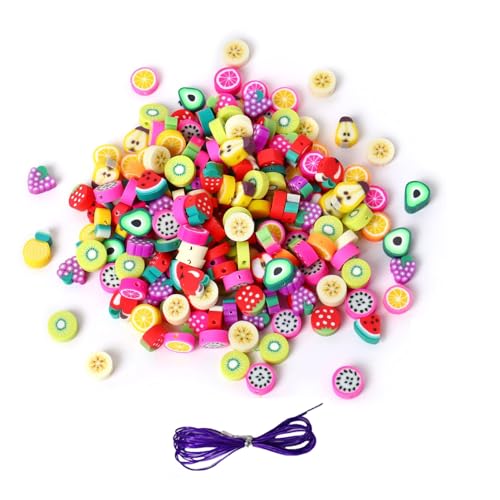 Wenrescry 200 stycken fruktpärlor, fruktpärlor, gör-det-själv-pärlor för barn och vuxna, smycken och pysselpärlor för armband, halsband, örhängen, hantverk, levereras med 2 m rep