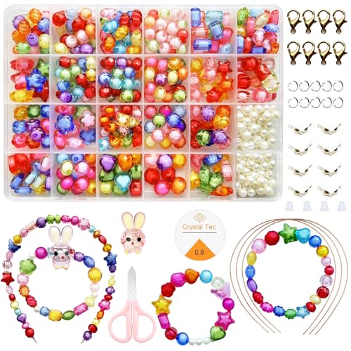 UUEMB Gör-det-själv-pärlor för smyckestillverkning, kit för barn, 550 st armbandstillverkningskit för barn, pärlor för att göra halsband, armband, födelsedagspresenter för flickor, barn, ålder 4-12