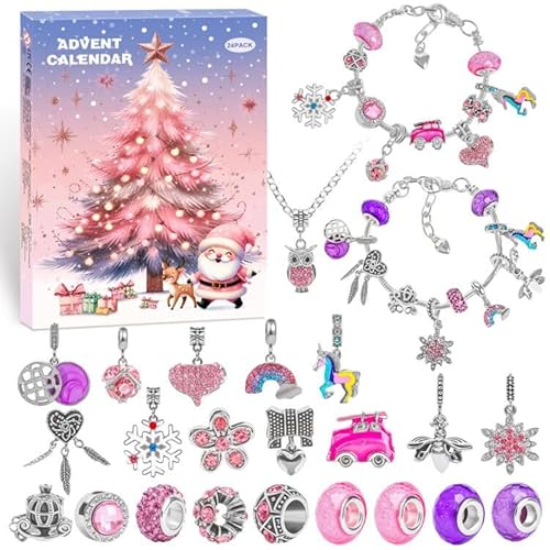 sudatong Adventskalender 2025 barn flickor, 24-dagars nedräkningskalenderset för gör-det-själv-smycken, 21 pärlor, 2 armband, 1 halsband, lämpligt för barn, tonåringar och kvinnor