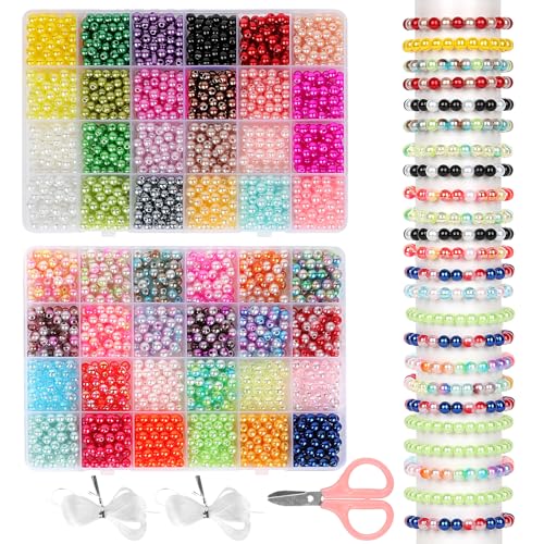 YSWOVUO 2400 stycken 48 färger pärlor för armband, 6 mm runda färgglada pärlor, pärlor att trä på för gör-det-själv smyckestillverkning armband halsband hantverk, pärlor för pyssel för vuxna och barn