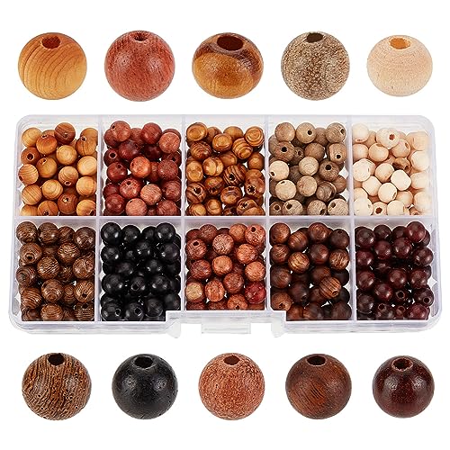 PH PandaHall 500 st naturliga träpärlor, 10 stilar, 6 mm, runda lösa pärlor i trä, naturliga, lösa pärlor för armband, halsband, örhängen, smyckestillverkning