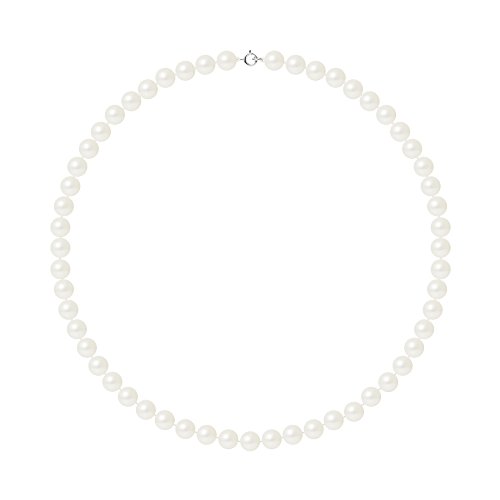 Pearls & Colors - AKOYA äkta runda odlade pärlor halsband - Japan certifierat ursprung - 7–7,5 mm - AA+ kvalitet - rosa vit - Prestige marin ring, Pärla, Pärla