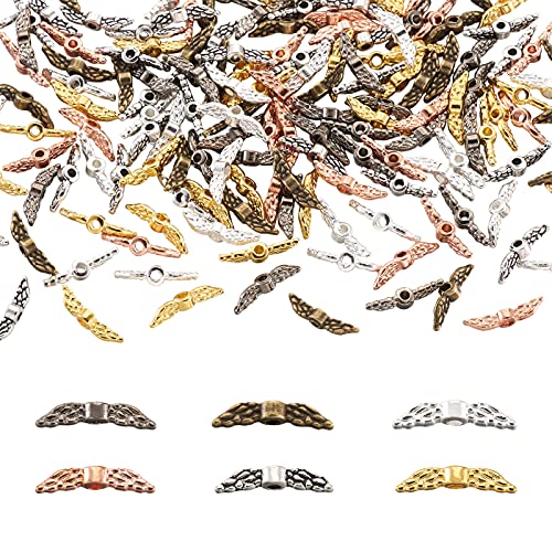 Pandahall 300 st tibetansk stil änglavingar distanser pärlor legering antik fe vinge berlock pärlor blandade färger vintage lösa pärlor för armband halsband örhänge smyckestillverkning