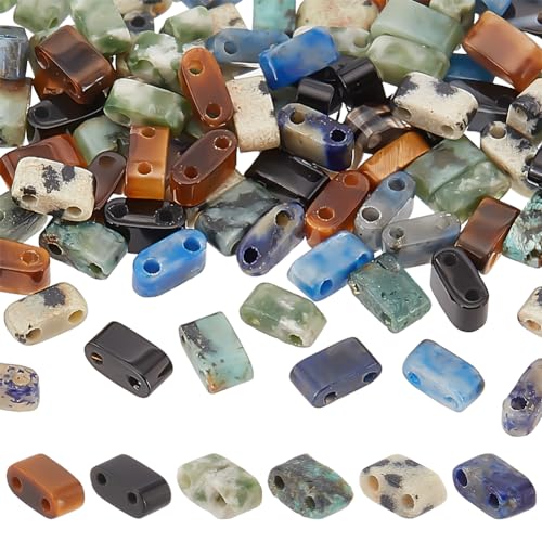 PH PandaHall 120 st halvtila pärlor 6 stilar naturliga ädelsten pärlor 2 hål platt distans pärlor lösa rektangulära pärlor för armband halsband