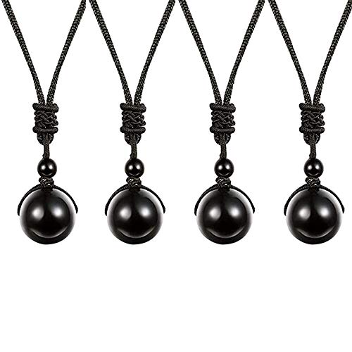 Naturligt obsidian justerbart halsband naturliga obsidian pärlhalsband obsidian hänge för män kvinnor överföring lycka till kärlek pärlor hänge halsband smycken 14 mm 4 stycken, nej, Nej