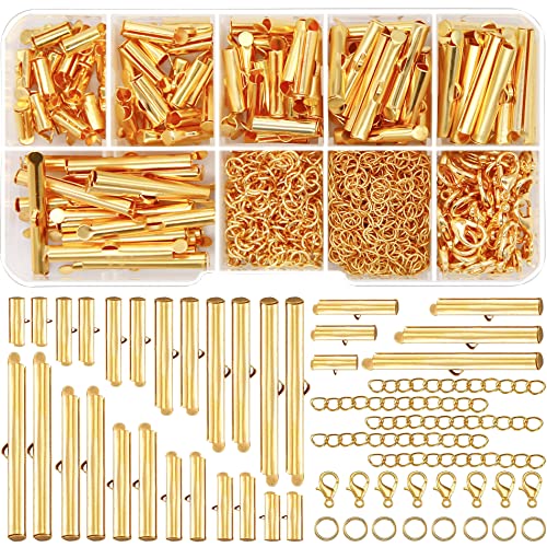 EuTengHao 540 st skjutreglage-kit, pärlrör glidskenor ändar glidskenor med hummerlås, kedjesökare, smyckesfyndningskit för pärlor, halsband, armband, smyckestillverkning (6 storlekar, guld)