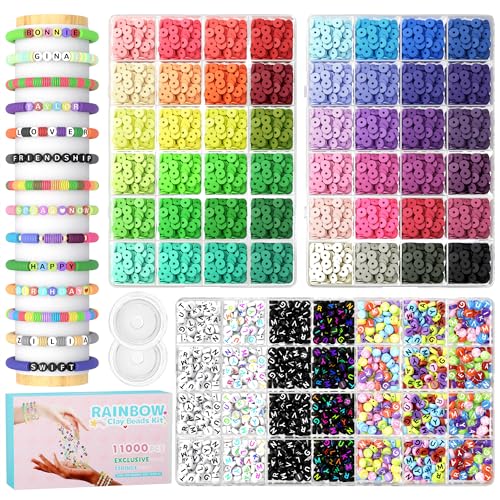 ARTDOT 11000 bitar armbandspärlor, 48 färger pärlor kit för pärlor smyckestillverkning, polymerlera armbandspärlor 7 stilar bokstäver armband DIY halsband hantverk presentidéer