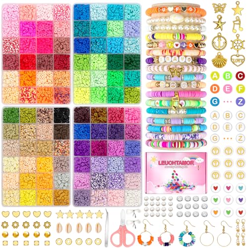 LEUCHTAMOR Set med lerpärlor för smyckestillverkning, platta pärlor, polymer, runda heishi-pärlor, berlocker, bokstäver, gör-det-själv-konst, hantverk, gåvor för flickor/vuxna, 15 000 st, 96 färger