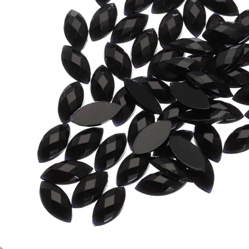 QUARKZMAN 100 st akryl hästöga ädelstenar 4 x 8 mm platt baksida konstgjorda stenar för gör-det-själv hantverk pärlor bröllop ansiktsmålning smycken svart