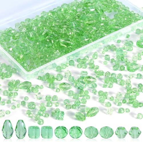 1 000 stycken glaspärlor för gängning, glitter pysselpärlor, 4/5/6/8 mm pärlor att trä upp, kristallpärlor med behållarlåda för gör-det-själv smyckestillverkning (grön)