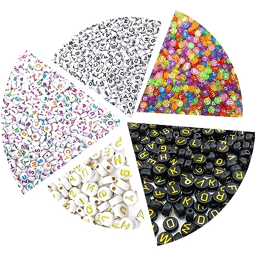 ZesNice 1 200 stycken bokstavspärlor, färgglada runda bokstäver, pärlor att trä på, med 50 m elastiskt snöre, pysselset för att göra egna armband