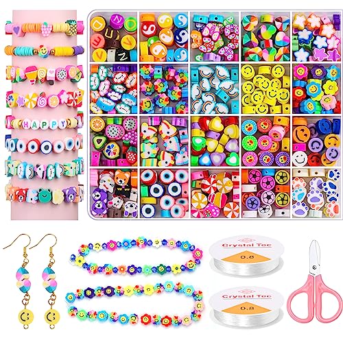 403 stycken pärlor för att trä upp, 120 mönster polymerlerpärlor mjuka krukpärlor med frukt djur söt regnbåge kärlek stjärna för smycken pyssel gåva för barn