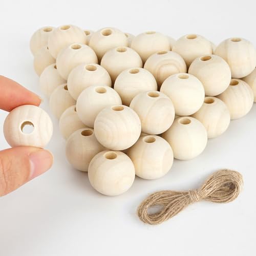 Behiruch 100 stycken träpärlor för gängning, 20 mm träkulor med hål, runda stora träpärlor, natur för makramé, pärlor, trä för pyssel, gör-det-själv smycken, armband, halsband