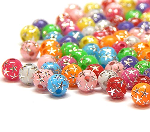 Perlin 400 stycken, plastpärlor blandning stjärna strass-effekt glitter plastpärlor 5 mm rund, färgglada akrylpärlor set pärlor för att trä på
