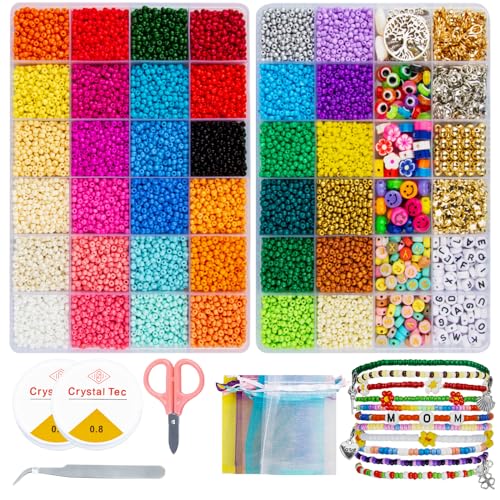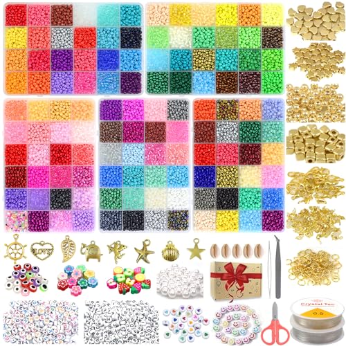 VTSHENY 120 färger, 15093 stycken pärlor, set för armband, 4 mm pärlor för att trä på sig, rocailles gör det själv med 300 st bokstäver, pärlor och hängen för gör-det-själv smycken, halsband, örhänge