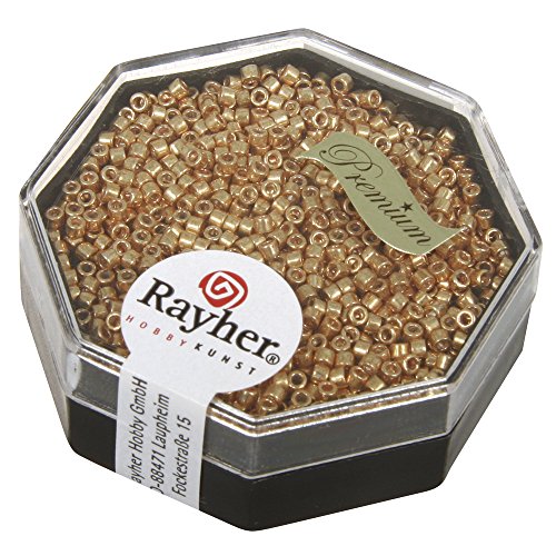 Rayher Delica-Rocailles, Miyuki-Rocailles, metallisk, guld, 2,2 mm ø, burk 4 g, pärlor att trä upp, glaspärlor små, 14750616