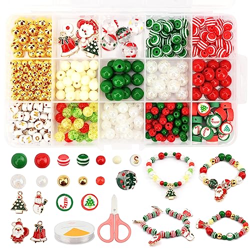360 stycken julpärlor set armband gör-det-själv göra pärlor för att trä på jul pärlset armband gör-det-själv berlocker hängsmycken jul pyssel pärlor för armband halsband örhängen