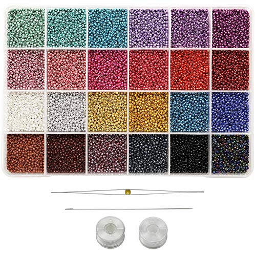 Bala&Fillic 11/0 pärlor att trä på rocailles pärlor, 24 färger, 14 400 stycken, miniglaspärlor rocailles pärlor för att göra örhängen