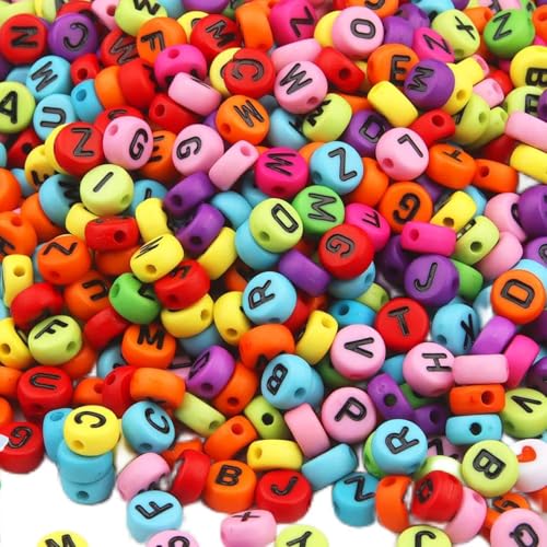 SUTOUG 1 000 stycken A-Z bokstavspärlor, 4 x 7 mm färgglada pärlor att trä upp, runda akrylpärlor för armband, smycken, gör-det-själv, tillverkning, hantverk, halsband, ornament, hänge, tillbehör,