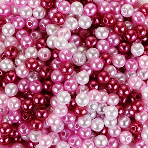 Naler 500 stycken glaspärlor rosa runda flerfärgade pärlor för att trä konstgjorda pärlor för smyckesbalster, Ø 6 mm
