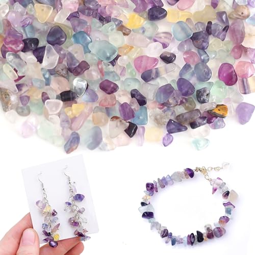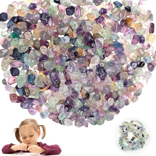 TQPXZO 450 stycken fluorit, pärlor för att trä på kristaller naturliga oregelbundna borrade gör-det-själv ädelsten 5–8 mm, pärlor set för smycken göra armband kedjor örhängen