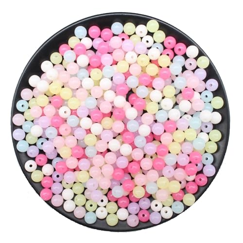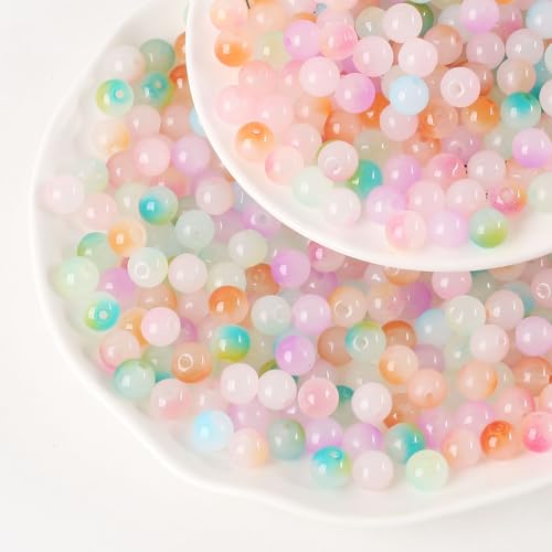 HERZONE 500 st glaspärlor i färgglada 8 mm runda färgglada pärlor att trä på (färgglad-c)