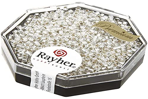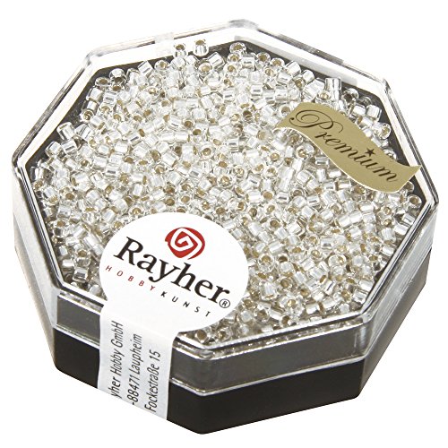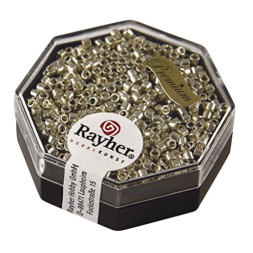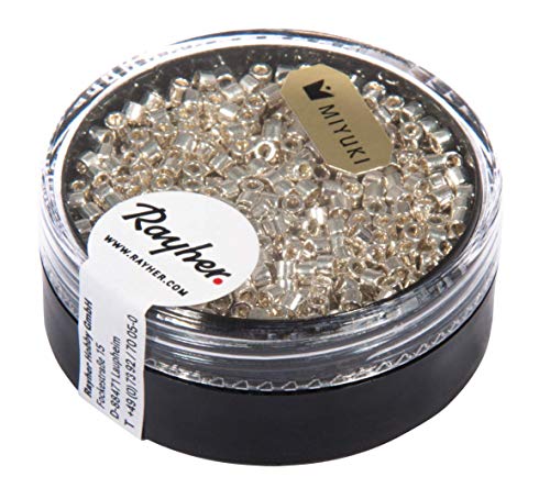 Rayher Hobby Rayher Delica-Rocailles, Miyuki-Rocailles, metallisk, silver, 1,6 mm ø, burk 4 g, pärlor att trä upp, glaspärlor liten, 14760606