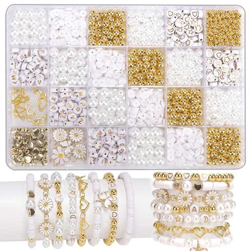 BOMULEZG Vita pärlset för gör-det-själv-armband, gör-det-själv-smycken, pysselset för flickor och vuxna, pärlor att trä på för armband, halsband, presentidéer (7)