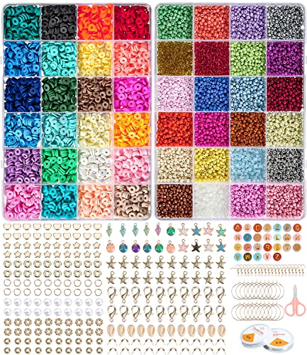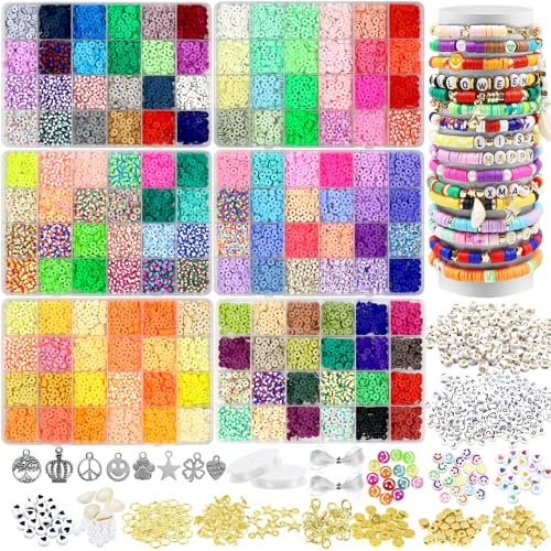 BIBOKLTIY 144 färger, 15 000 stycken pärlor för att trä upp, 6 mm polymerlerpärlor, set med bokstavspärlor, Heishipärlor för gör-det-själv armband, halsband, hantverk