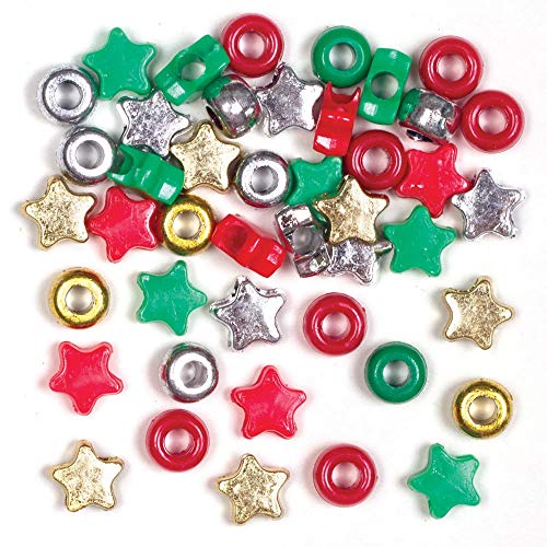 Baker Ross AT204 storpack pärlor för att trä på barn i julfärger (300 stycken) festliga barnsmycken till jul, sorterade