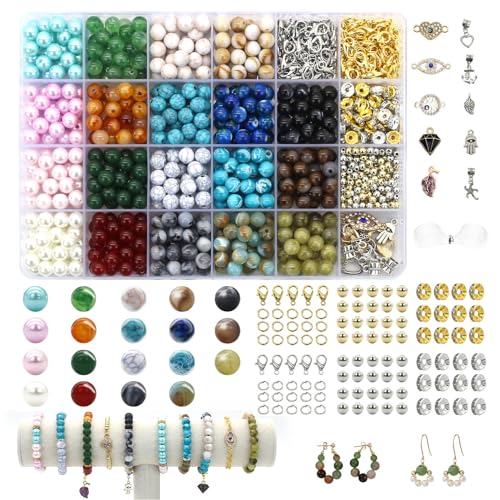 Liangding 1040 stycken pärlor för att trä upp, 8 mm pärlarmband gör själv, syntetiska ädelstenar pärlor med hänge tillbehör för gör-det-själv smyckestillverkning halsband örhängen