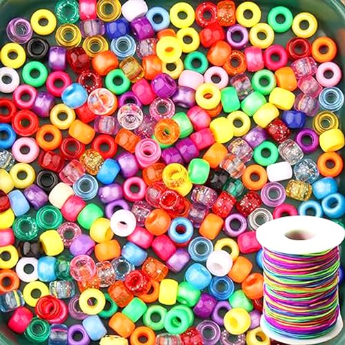 1 200 st ponnypärlor för armband, stora hål pärlor, 6 x 9 mm, färgglada gör-det-själv-pärlor att trä på med 50 m elastiskt snöre för armband, gör-det-själv-smyckestillverkning, flickor