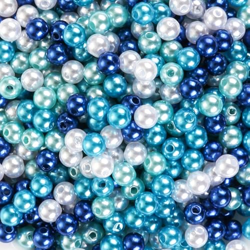 Naler 500 stycken glaspärlor blå runda flerfärgade pärlor för att trä konstgjorda pärlor för smyckesbalster, Ø 6 mm