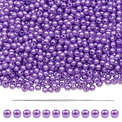 TOAOB 1000 stycken pysselpärlor, lila, 4 mm, akrylpärlor med hål, runda pärlor att trä på, för gör-det-själv-smyckestillverkning, armband, halsband, kläder och pyssel