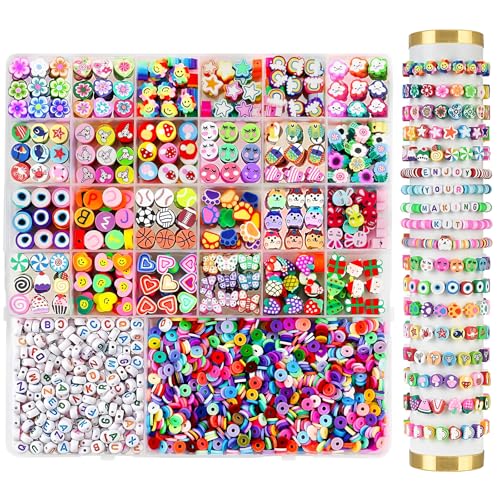 Jissta 10 660 stycken pärlor att trä på, 3 mm, pärlset, bokstavspärlor, färger, platta, polymerlera, för pärlarmband, gör det själv