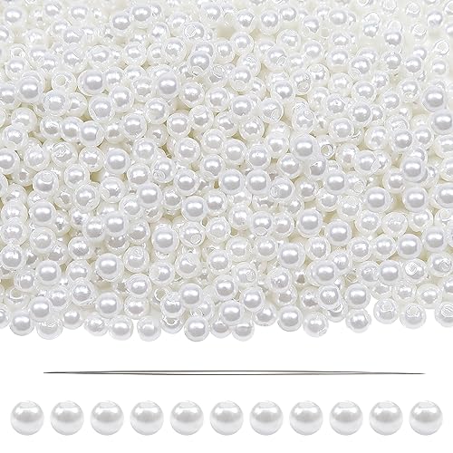 TOAOB 1 000 stycken pysselpärlor vita plastpärlor 4 mm akrylpärlor med hål runda pärlor för att trä på gör-det-själv smyckestillverkning armband halsband kläder pyssel